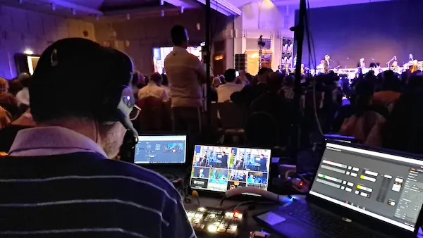 תקבלו צוות צילום מקצועי עם ציוד מתקדם לתיעוד כנסים , טקסים, הרצאות, שידור זום מקצועי, ניתוב מצלמות, הקמת אולפן שטח, הטמעת גרפיקה וסרטונים בזמן השידור, כמו בטלוויזיה!